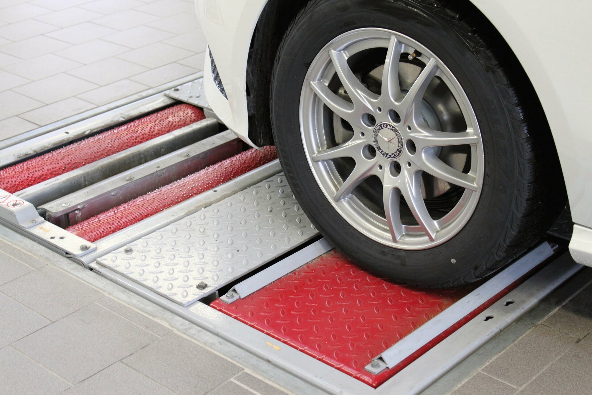 A common cause for increased tyre wear is an incorrectly set tyre track. Tyres that are not precisely aligned to the direction of travel cause a typical one-sided "erasure wear" that can be avoided by a correct setting. The exact suspension settings, for example, can be tested with the slip-slide tester MINC series from MAHA. When driving into the workshop, information about the suspension setting can be quickly determined by travelling over it.