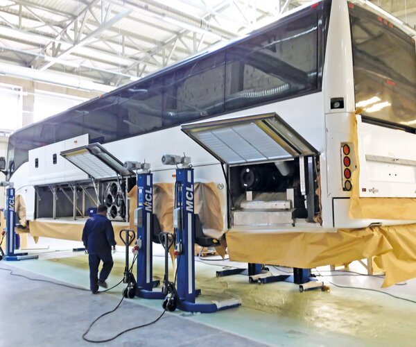 - Group and individual column operating modes enable quick and easy replacement of wheel and axle suspensions