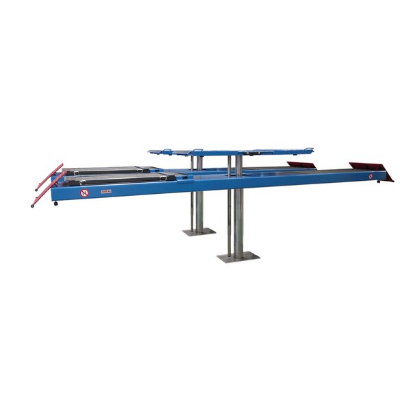- Optional conversion to chassis measurement lift with precisely aligned driving platforms, sliding plates for tension-free wheel support, driving platform levelling and axle measurement supports
