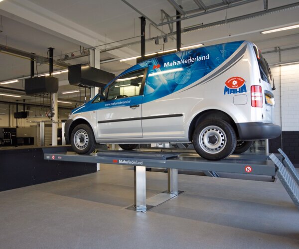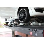 - Optional conversion to chassis measurement lift with precisely aligned driving platforms, sliding plates for tension-free wheel support, driving platform levelling and axle measurement supports