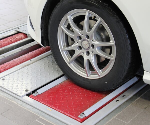 - Parallelogram-guided test plates and therefore no fixed wheel testing point necessary